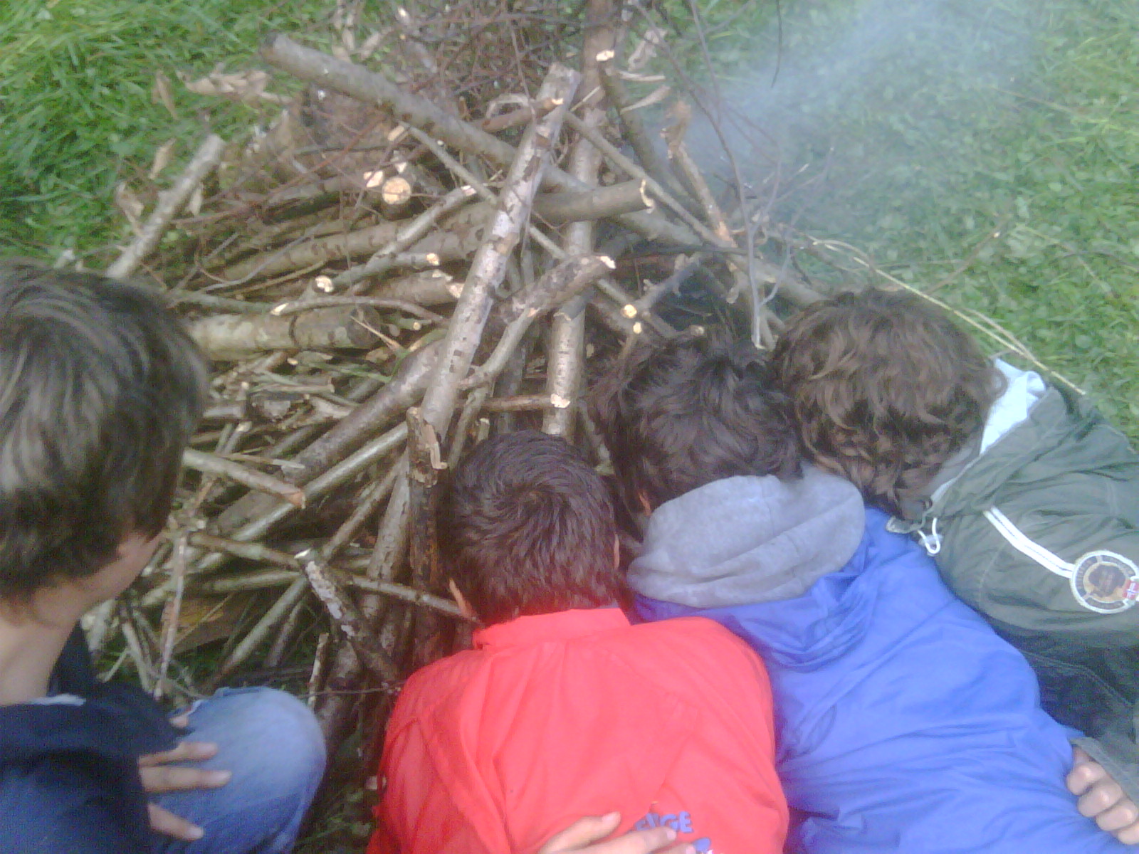 La qualita’ delle foto e’ pero’ compensata dalla riuscita dell’evento, che si puo’ dire completa: tanti sorrisi, nottata in tenda all’asciutto (anche se abbiamo temuto…), nessun ferito (quasi) nonostante le numerose armi proprie e improprie, e cena cotta sul fuoco, nonostante qualche iniziale difficolta’.